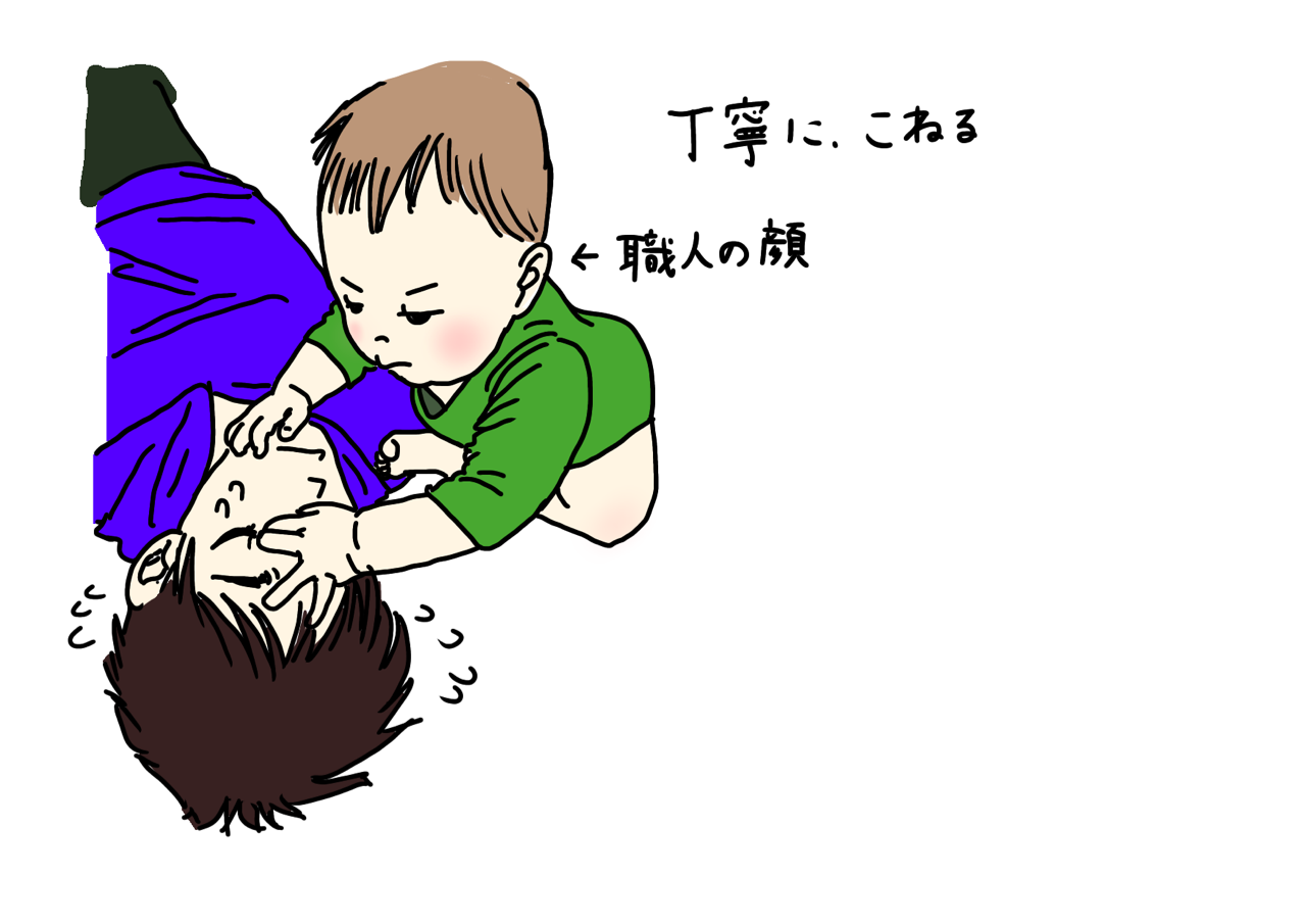 イラストは、旦那さんの顔が丁寧にこねられている時の様子。
